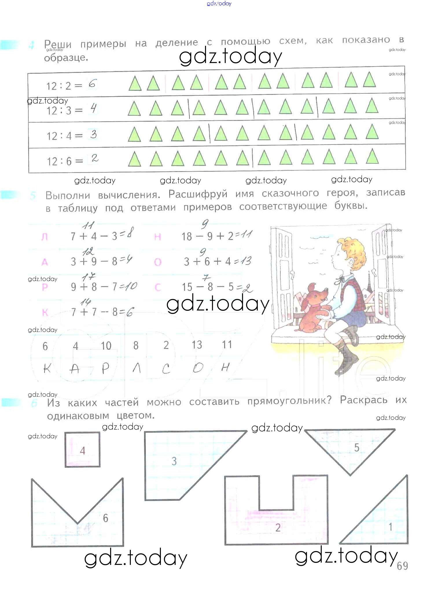 На страницах сайта gdz.today вы найдете учебный и вспомогательный материал, направленный на улучшения знаний школьной программы. ГДЗ - онлайн мир знаний Решение к части 1. Страницы 69 Рабочей тетради по Математике для 2 класса Дорофеев, Миракова Просвещение Перспектива 2015