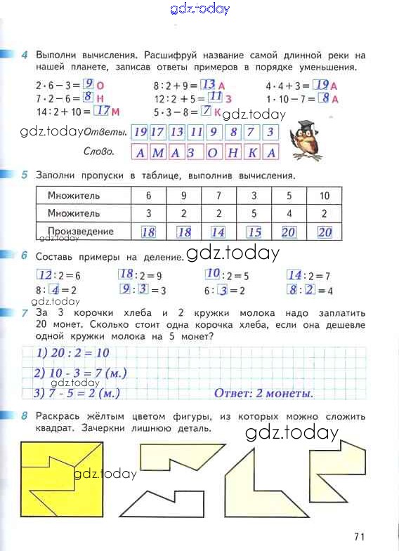 На страницах сайта gdz.today вы найдете учебный и вспомогательный материал, направленный на улучшения знаний школьной программы. ГДЗ - онлайн мир знаний Решение к части 1. Страницы 71 Рабочей тетради по Математике для 2 класса Дорофеев, Миракова Просвещение Перспектива 2015