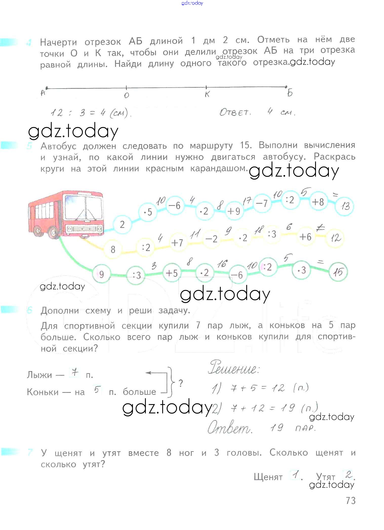 Ответы к Решение к части 1. Страницы 73 Рабочей тетради по Математике для 2 класса Дорофеев, Миракова Просвещение Перспектива 2015