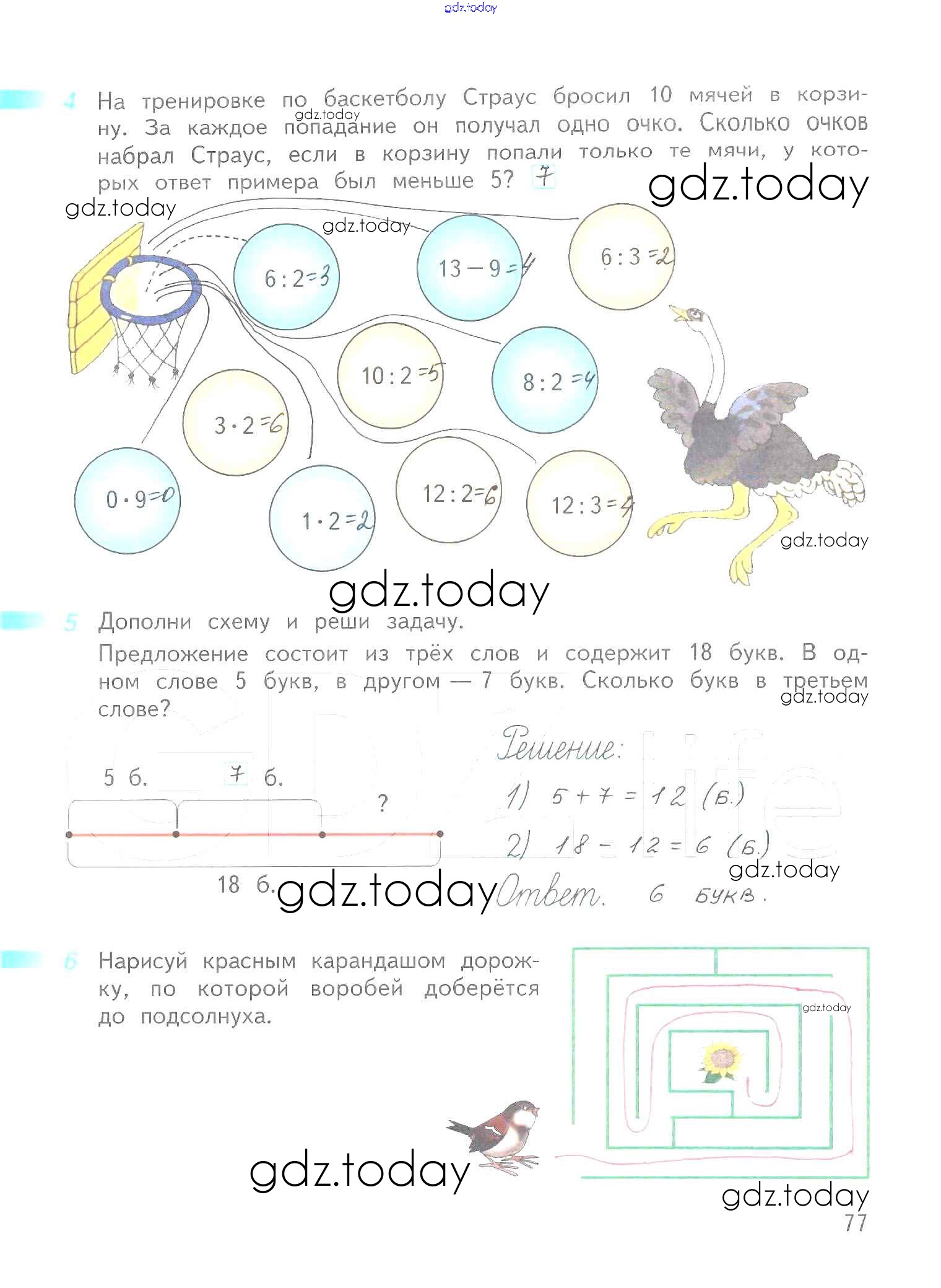 На страницах сайта gdz.today вы найдете учебный и вспомогательный материал, направленный на улучшения знаний школьной программы. ГДЗ - онлайн мир знаний Решение к части 1. Страницы 77 Рабочей тетради по Математике для 2 класса Дорофеев, Миракова Просвещение Перспектива 2015