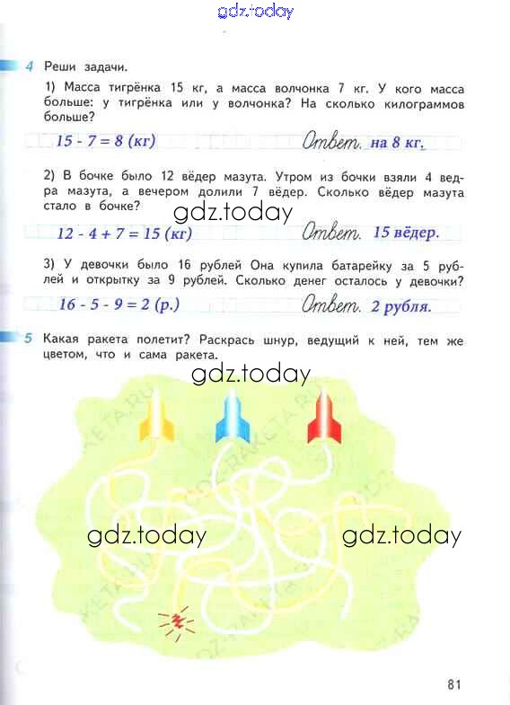 Ответы к Решение к части 1. Страницы 81 Рабочей тетради по Математике для 2 класса Дорофеев, Миракова Просвещение Перспектива 2015