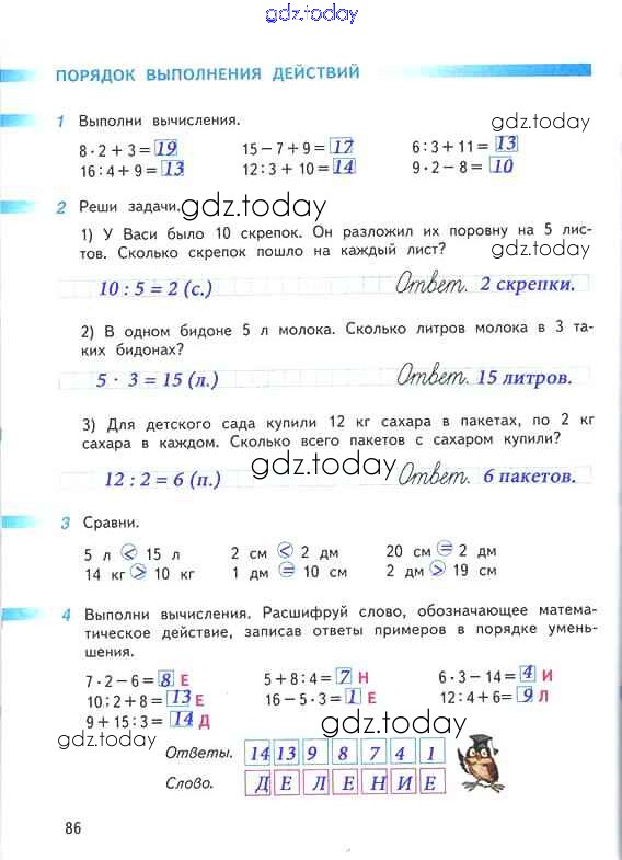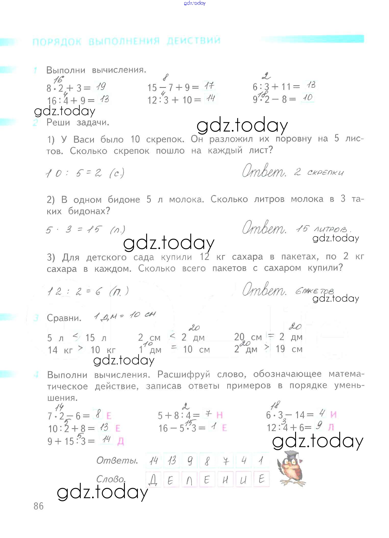 Ответы к Решение к части 1. Страницы 86 Рабочей тетради по Математике для 2 класса Дорофеев, Миракова Просвещение Перспектива 2015