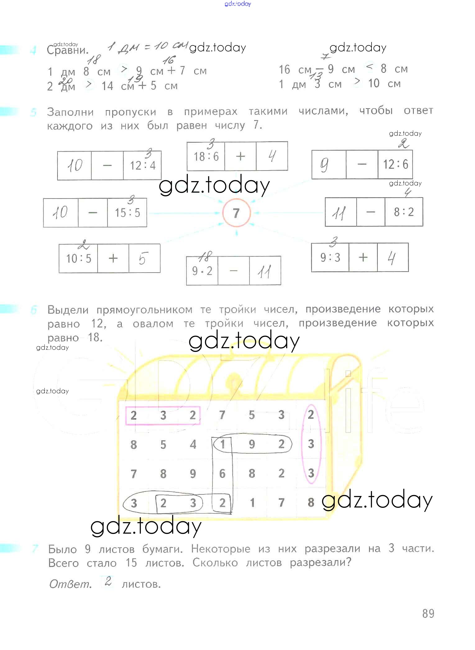 На страницах сайта gdz.today вы найдете учебный и вспомогательный материал, направленный на улучшения знаний школьной программы. ГДЗ - онлайн мир знаний Решение к части 1. Страницы 89 Рабочей тетради по Математике для 2 класса Дорофеев, Миракова Просвещение Перспектива 2015