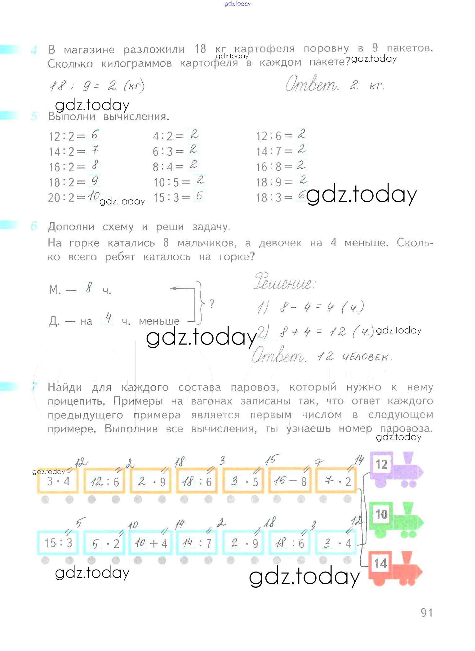 Ответы к Решение к части 1. Страницы 91 Рабочей тетради по Математике для 2 класса Дорофеев, Миракова Просвещение Перспектива 2015