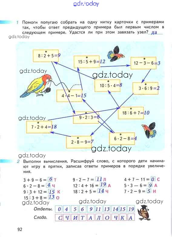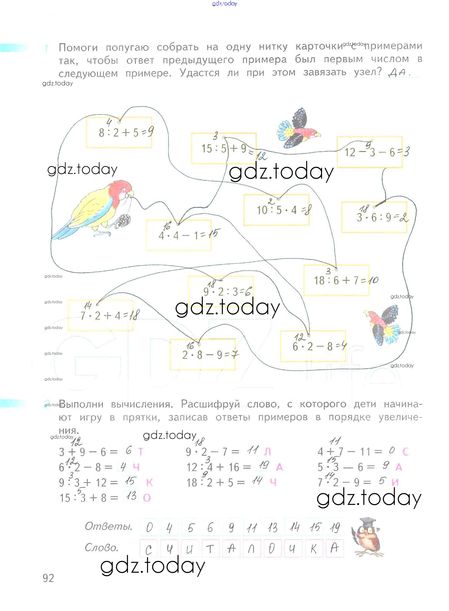 На страницах сайта gdz.today вы найдете учебный и вспомогательный материал, направленный на улучшения знаний школьной программы. ГДЗ - онлайн мир знаний Решение к части 1. Страницы 92 Рабочей тетради по Математике для 2 класса Дорофеев, Миракова Просвещение Перспектива 2015