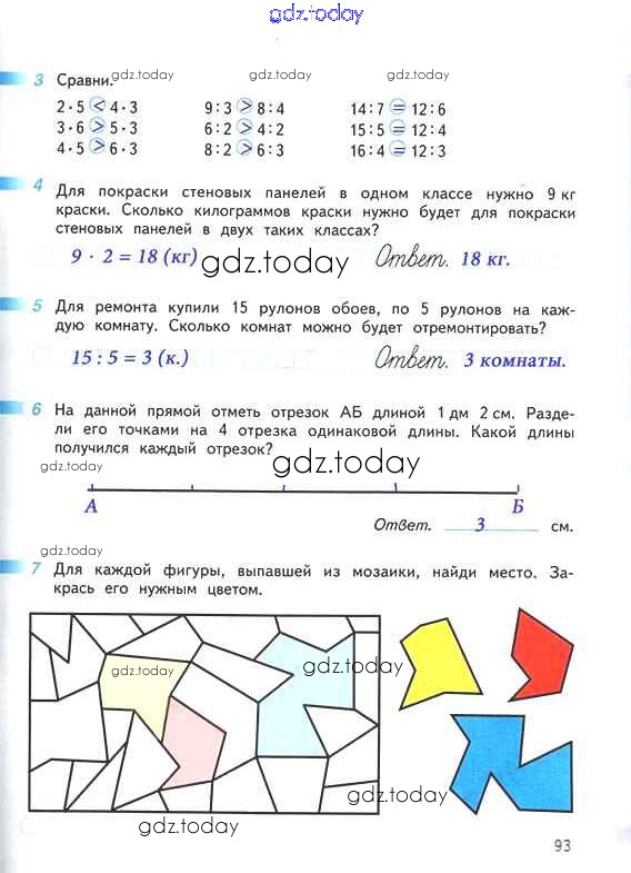 Ответы к Решение к части 1. Страницы 93 Рабочей тетради по Математике для 2 класса Дорофеев, Миракова Просвещение Перспектива 2015
