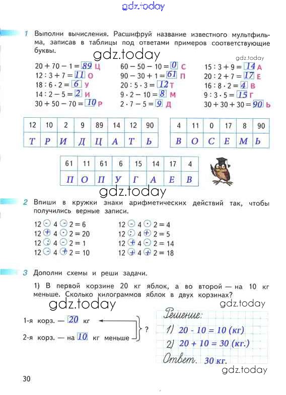 Ответы к Решение к части 2. Страницы 30 Рабочей тетради по Математике для 2 класса Дорофеев, Миракова Просвещение Перспектива 2015