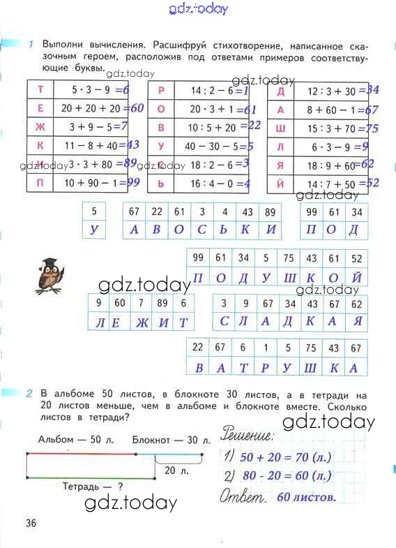 Ответы к Решение к части 2. Страницы 36 Рабочей тетради по Математике для 2 класса Дорофеев, Миракова Просвещение Перспектива 2015