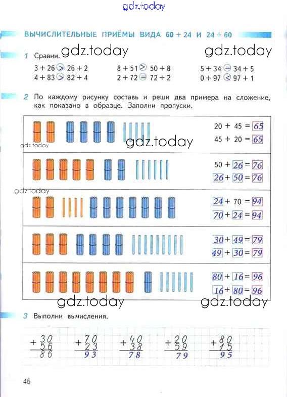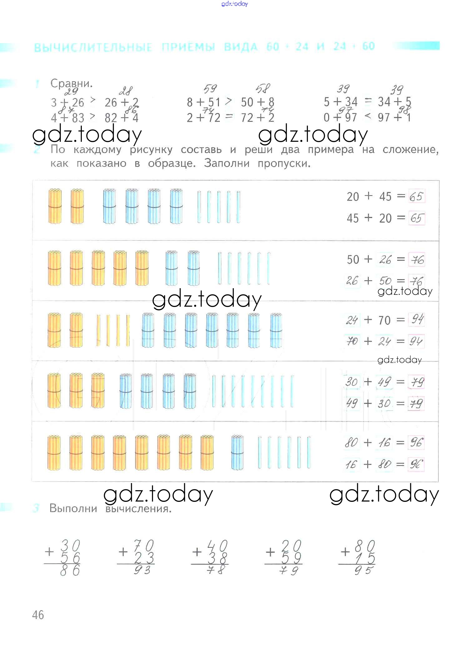На страницах сайта gdz.today вы найдете учебный и вспомогательный материал, направленный на улучшения знаний школьной программы. ГДЗ - онлайн мир знаний Решение к части 2. Страницы 46 Рабочей тетради по Математике для 2 класса Дорофеев, Миракова Просвещение Перспектива 2015