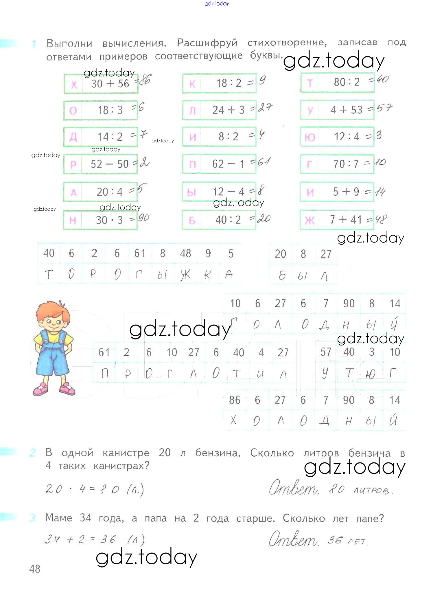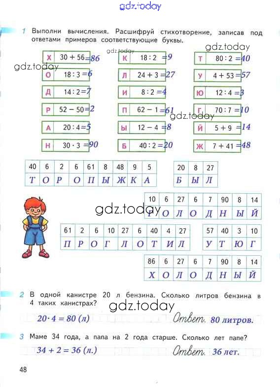 Ответы к Решение к части 2. Страницы 48 Рабочей тетради по Математике для 2 класса Дорофеев, Миракова Просвещение Перспектива 2015
