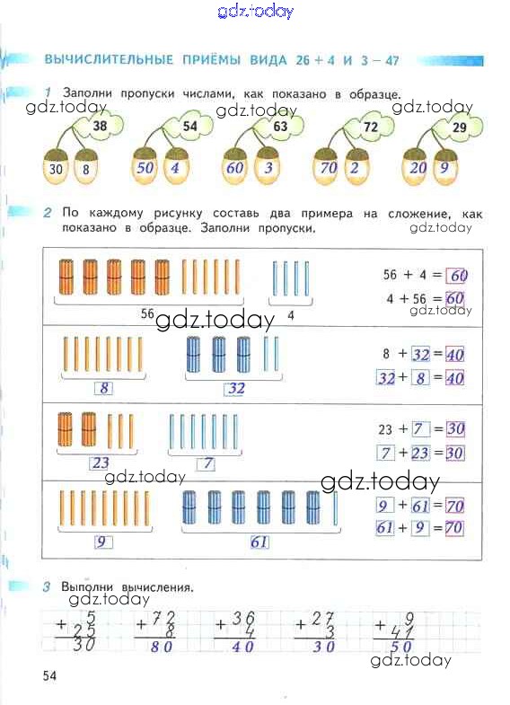 На страницах сайта gdz.today вы найдете учебный и вспомогательный материал, направленный на улучшения знаний школьной программы. ГДЗ - онлайн мир знаний Решение к части 2. Страницы 54 Рабочей тетради по Математике для 2 класса Дорофеев, Миракова Просвещение Перспектива 2015