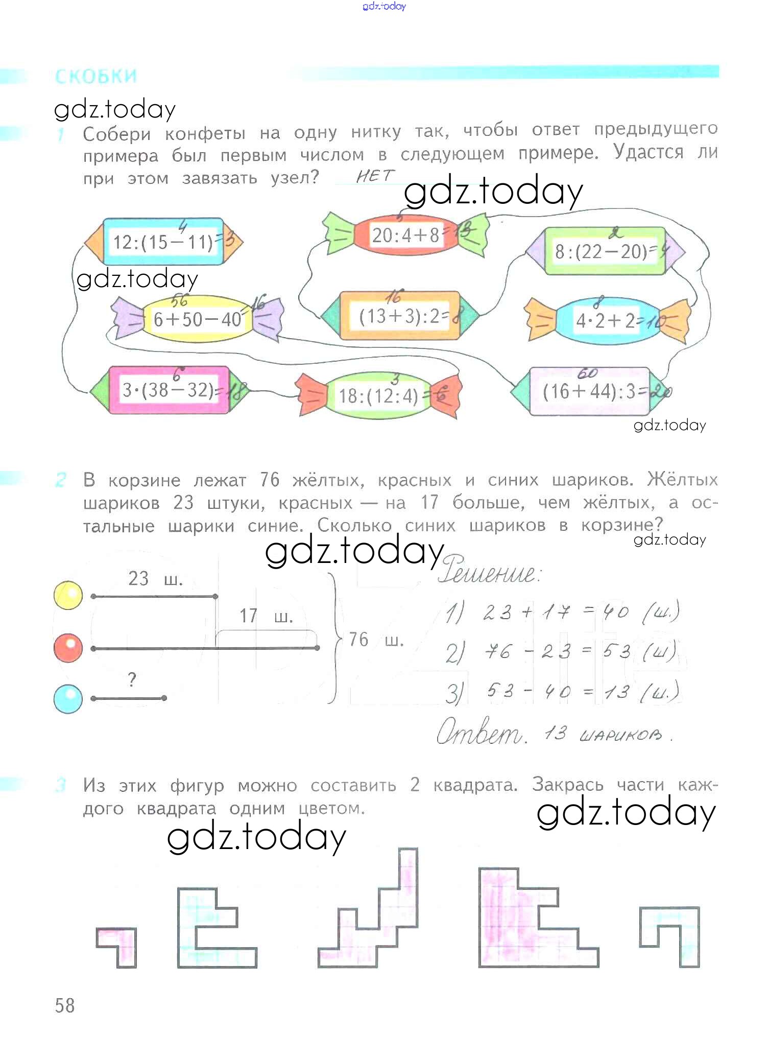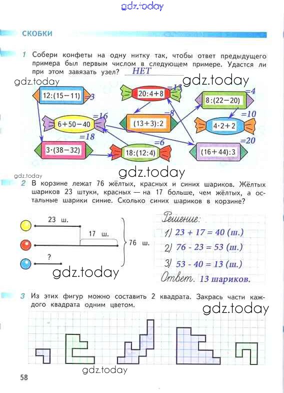 Ответы к Решение к части 2. Страницы 58 Рабочей тетради по Математике для 2 класса Дорофеев, Миракова Просвещение Перспектива 2015