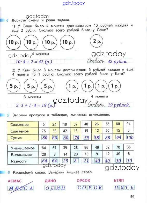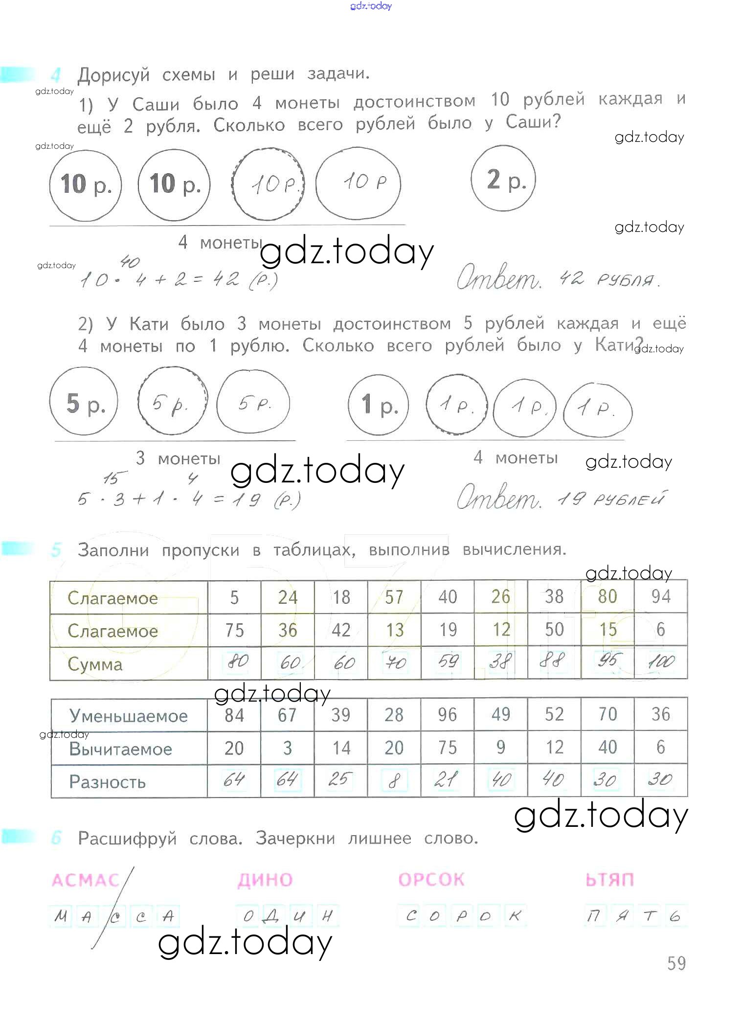 Ответы к Решение к части 2. Страницы 59 Рабочей тетради по Математике для 2 класса Дорофеев, Миракова Просвещение Перспектива 2015