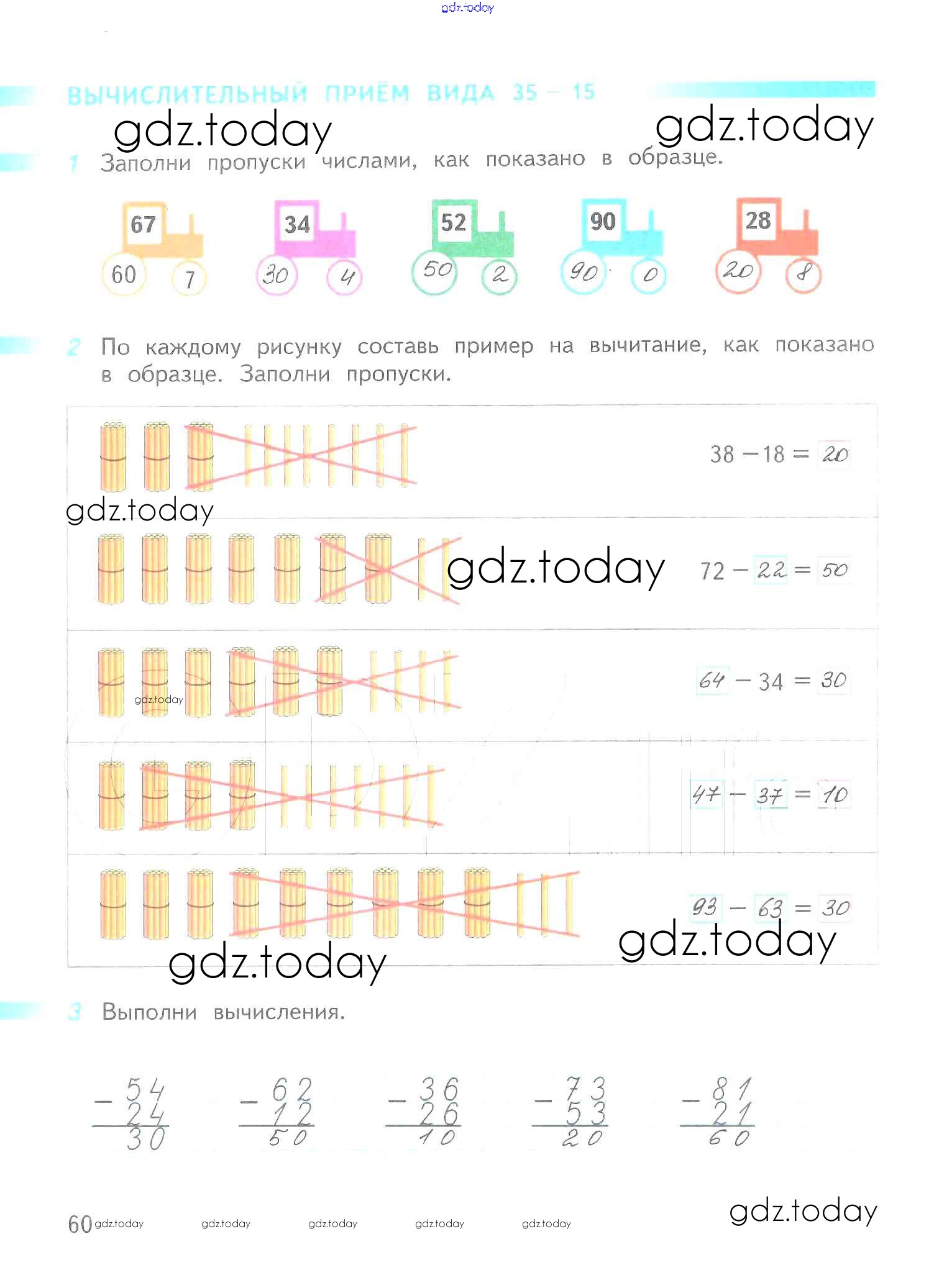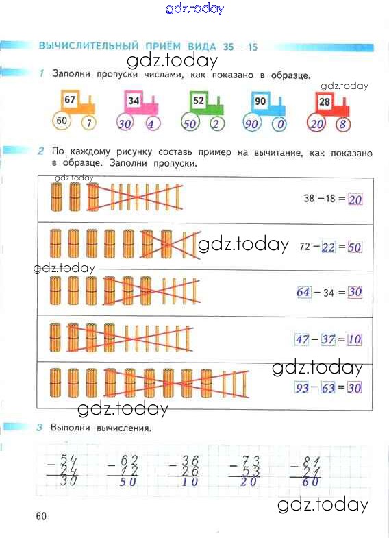 На страницах сайта gdz.today вы найдете учебный и вспомогательный материал, направленный на улучшения знаний школьной программы. ГДЗ - онлайн мир знаний Решение к части 2. Страницы 60 Рабочей тетради по Математике для 2 класса Дорофеев, Миракова Просвещение Перспектива 2015