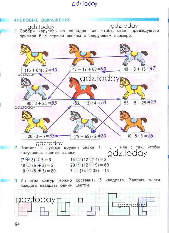 На страницах сайта gdz.today вы найдете учебный и вспомогательный материал, направленный на улучшения знаний школьной программы. ГДЗ - онлайн мир знаний Решение к части 2. Страницы 64 Рабочей тетради по Математике для 2 класса Дорофеев, Миракова Просвещение Перспектива 2015