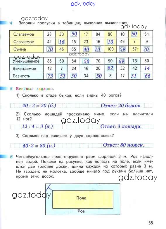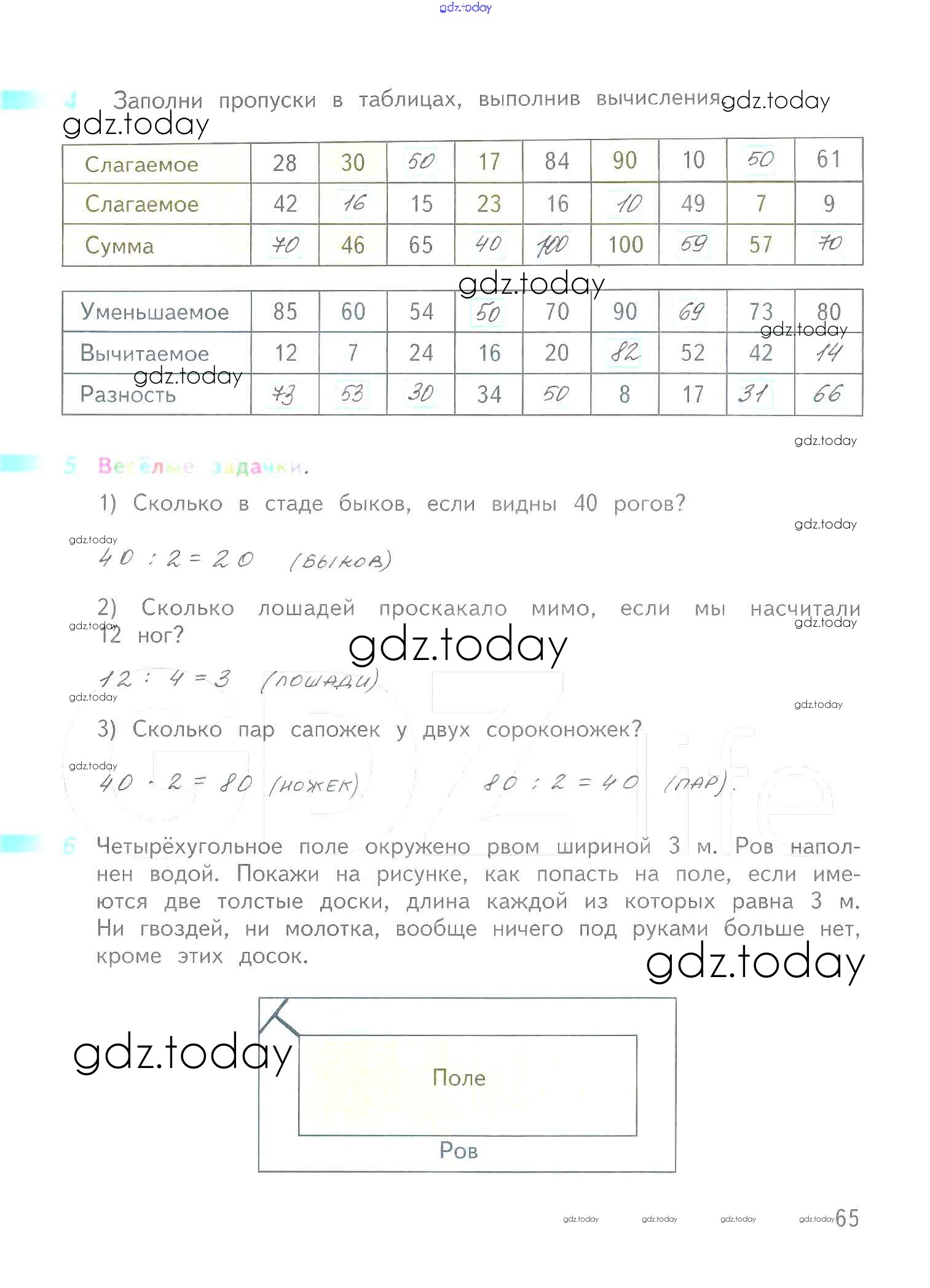 Ответы к Решение к части 2. Страницы 65 Рабочей тетради по Математике для 2 класса Дорофеев, Миракова Просвещение Перспектива 2015