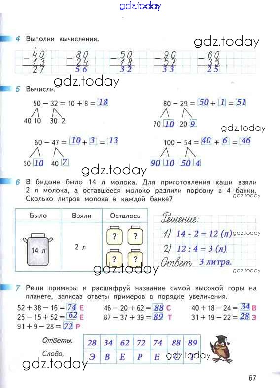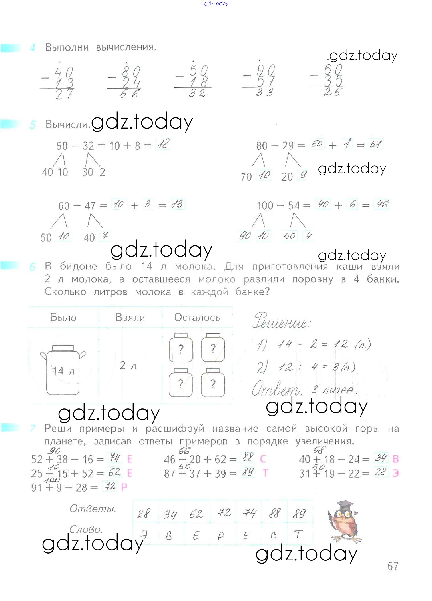 Ответы к Решение к части 2. Страницы 67 Рабочей тетради по Математике для 2 класса Дорофеев, Миракова Просвещение Перспектива 2015