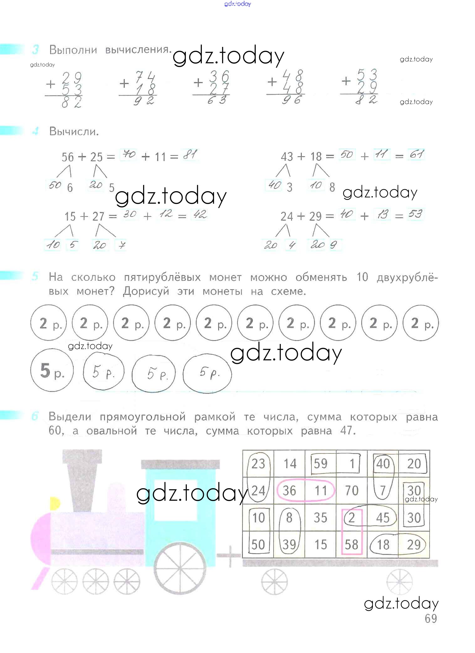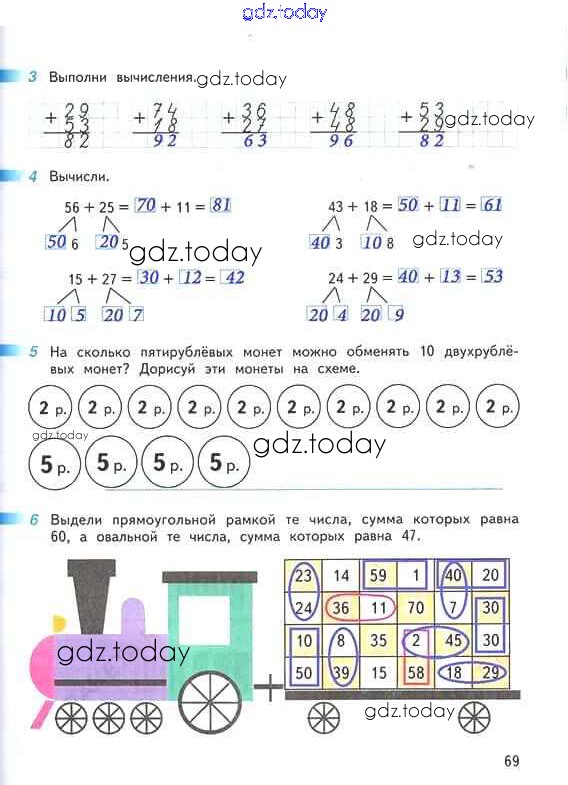 На страницах сайта gdz.today вы найдете учебный и вспомогательный материал, направленный на улучшения знаний школьной программы. ГДЗ - онлайн мир знаний Решение к части 2. Страницы 69 Рабочей тетради по Математике для 2 класса Дорофеев, Миракова Просвещение Перспектива 2015