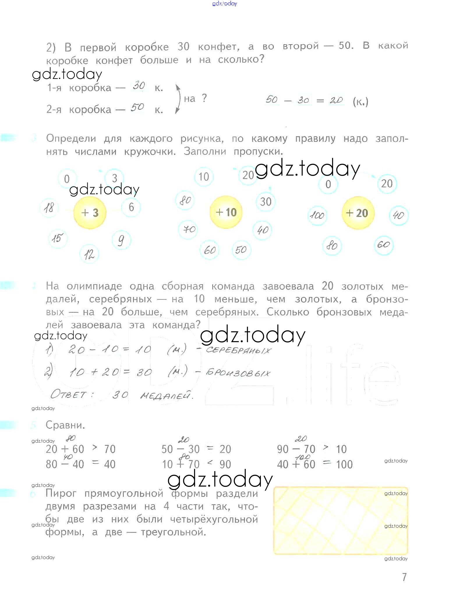 Ответы к Решение к части 2. Страницы 7 Рабочей тетради по Математике для 2 класса Дорофеев, Миракова Просвещение Перспектива 2015