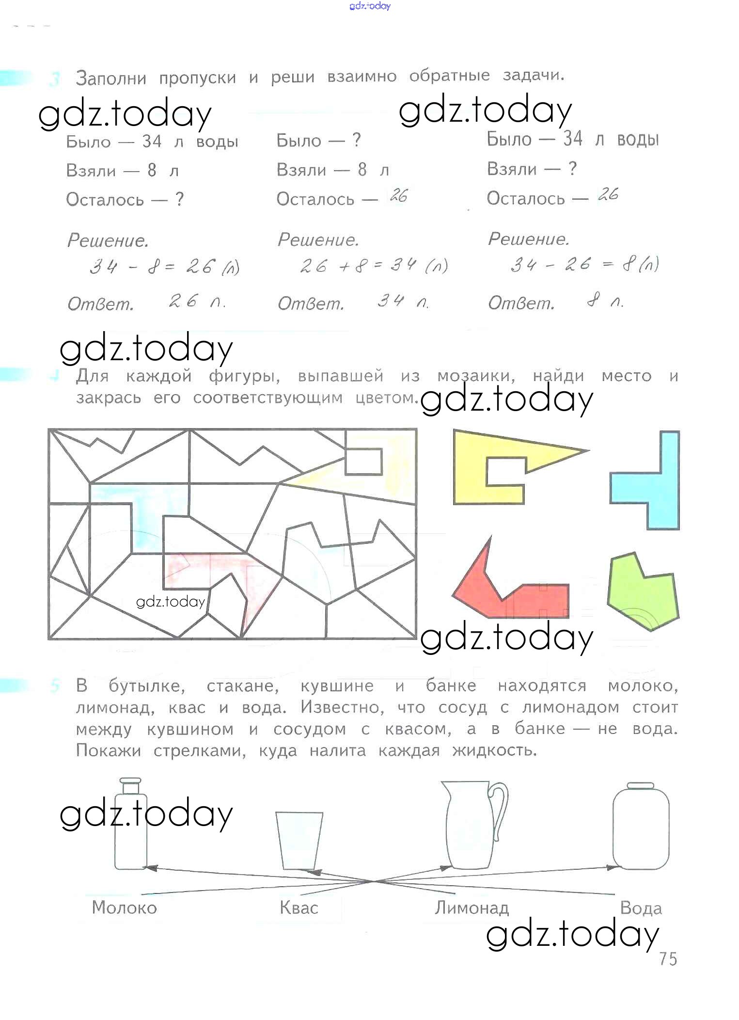 Ответы к Решение к части 2. Страницы 75 Рабочей тетради по Математике для 2 класса Дорофеев, Миракова Просвещение Перспектива 2015