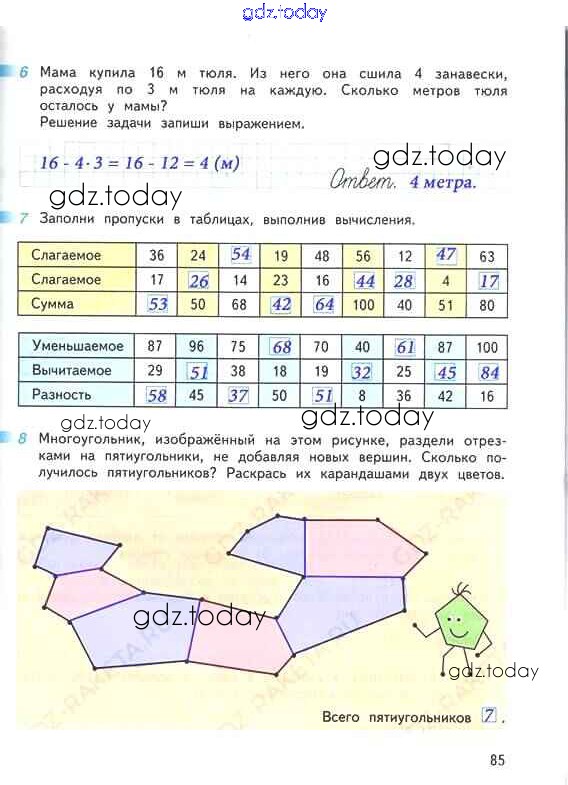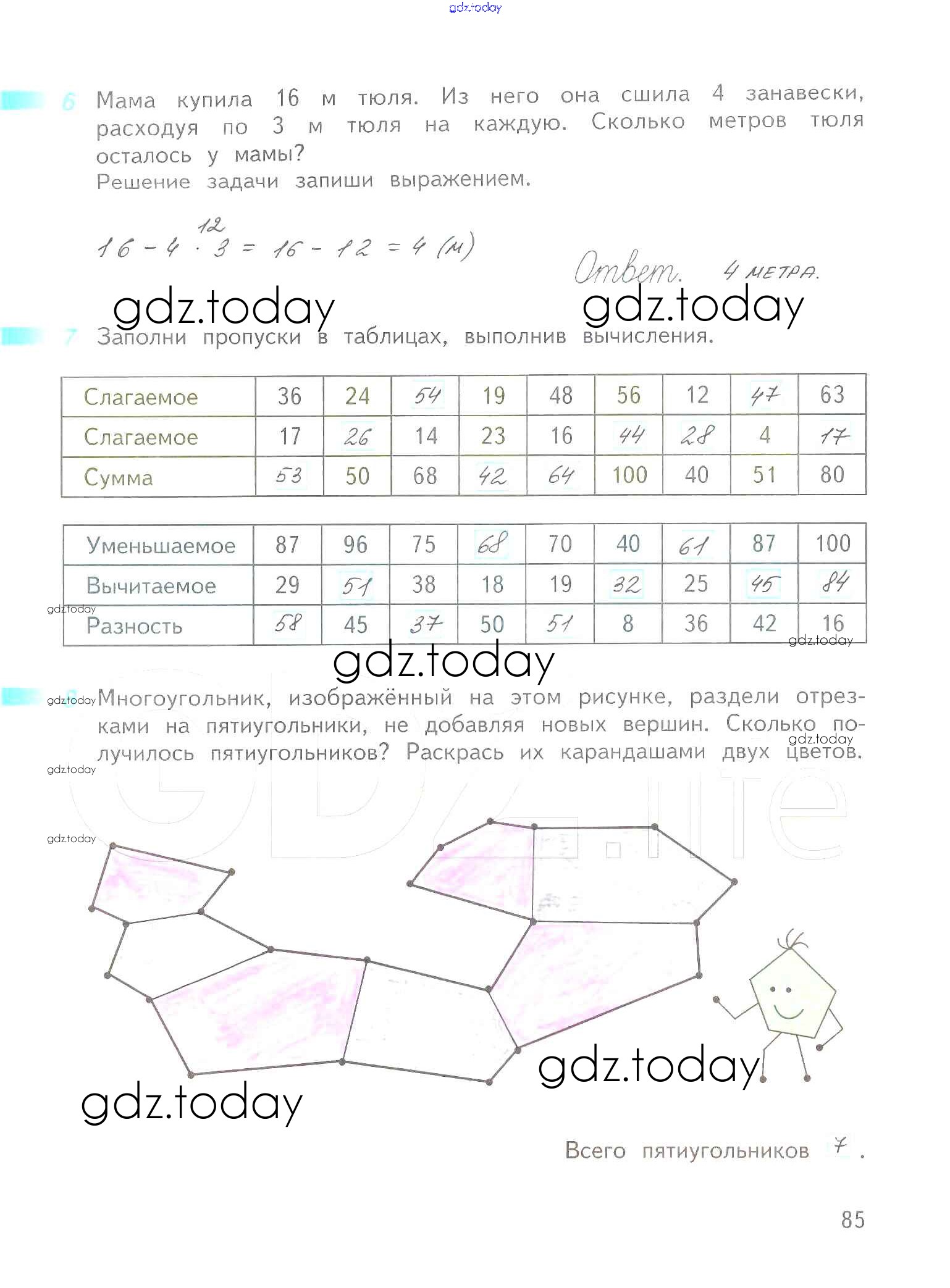 На страницах сайта gdz.today вы найдете учебный и вспомогательный материал, направленный на улучшения знаний школьной программы. ГДЗ - онлайн мир знаний Решение к части 2. Страницы 85 Рабочей тетради по Математике для 2 класса Дорофеев, Миракова Просвещение Перспектива 2015