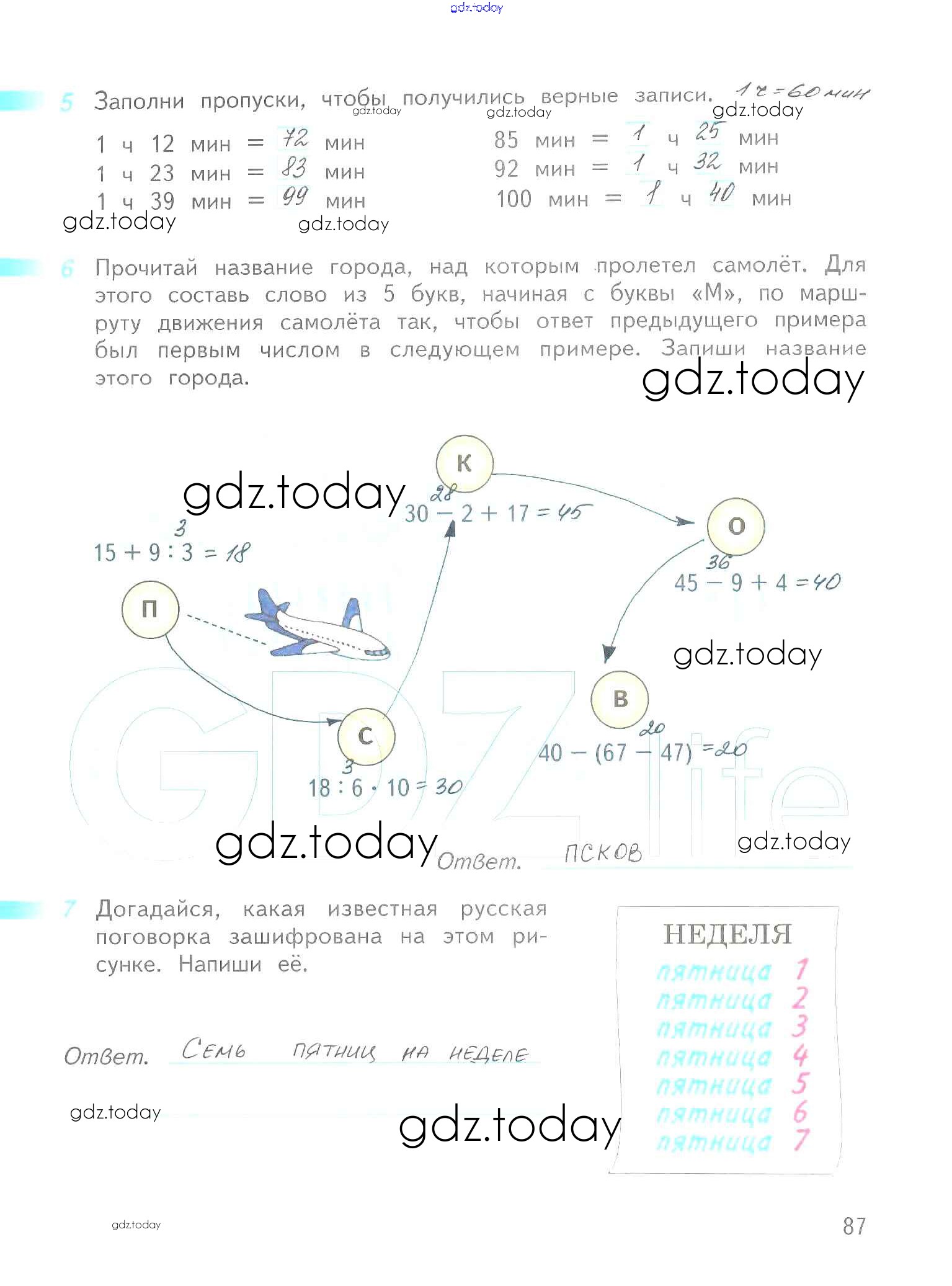 Ответы к Решение к части 2. Страницы 87 Рабочей тетради по Математике для 2 класса Дорофеев, Миракова Просвещение Перспектива 2015