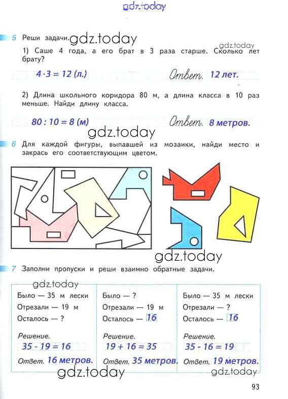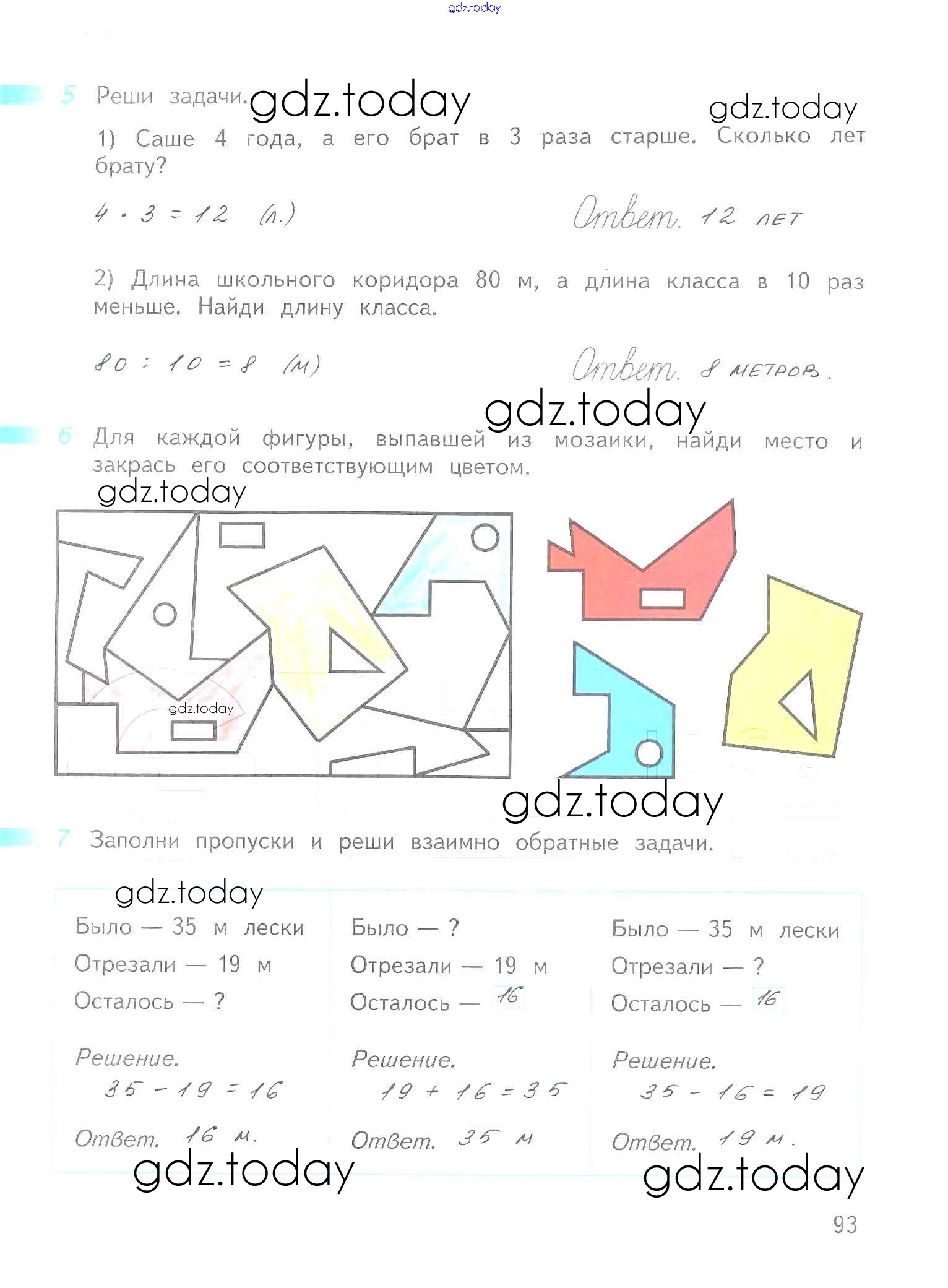 Ответы к Решение к части 2. Страницы 93 Рабочей тетради по Математике для 2 класса Дорофеев, Миракова Просвещение Перспектива 2015