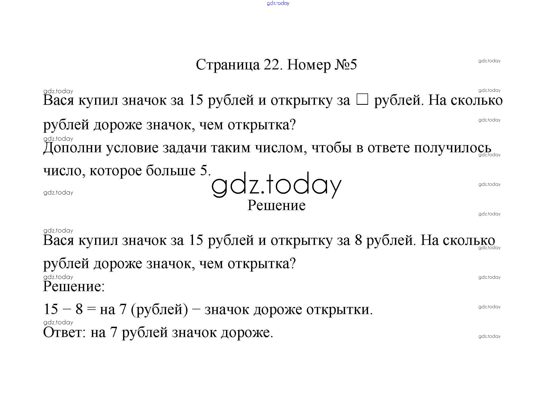 Ответы к Страницы 22-23 Решение к части 1 5 Учебнику по Математике для 2 класса Дорофеев, Миракова Просвещение Перспектива 2016
