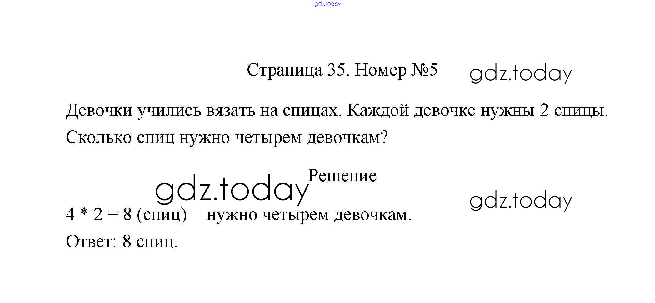 На страницах сайта gdz.today вы найдете учебный и вспомогательный материал, направленный на улучшения знаний школьной программы. ГДЗ - онлайн мир знаний Страницы 35 Решение к части 1 5 Учебнику по Математике для 2 класса Дорофеев, Миракова Просвещение Перспектива 2016
