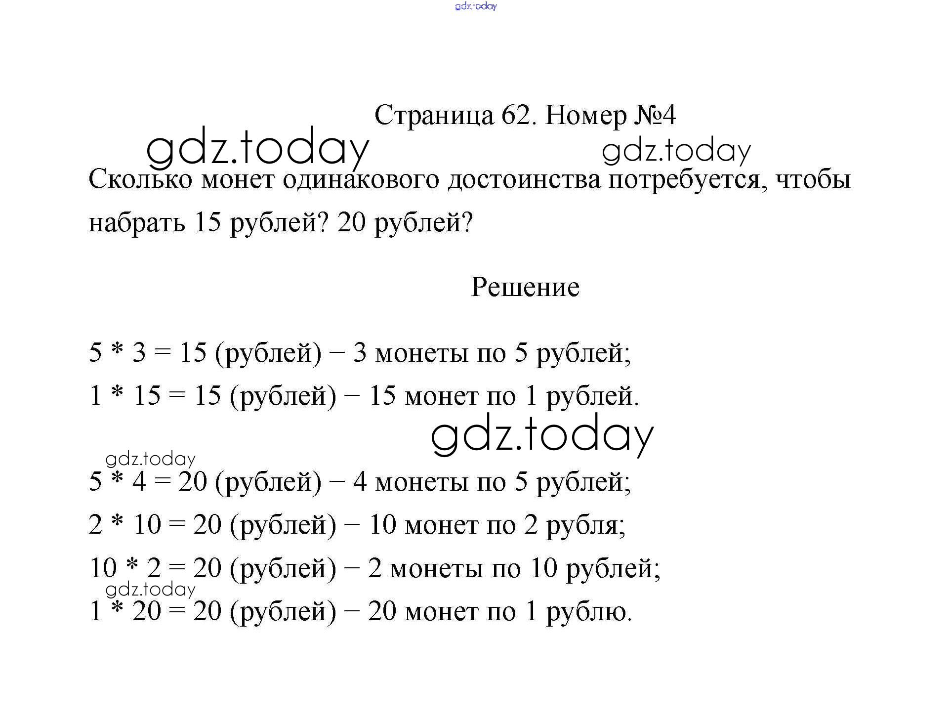 Ответы к Страницы 62-63 Решение к части 1 4 Учебнику по Математике для 2 класса Дорофеев, Миракова Просвещение Перспектива 2016