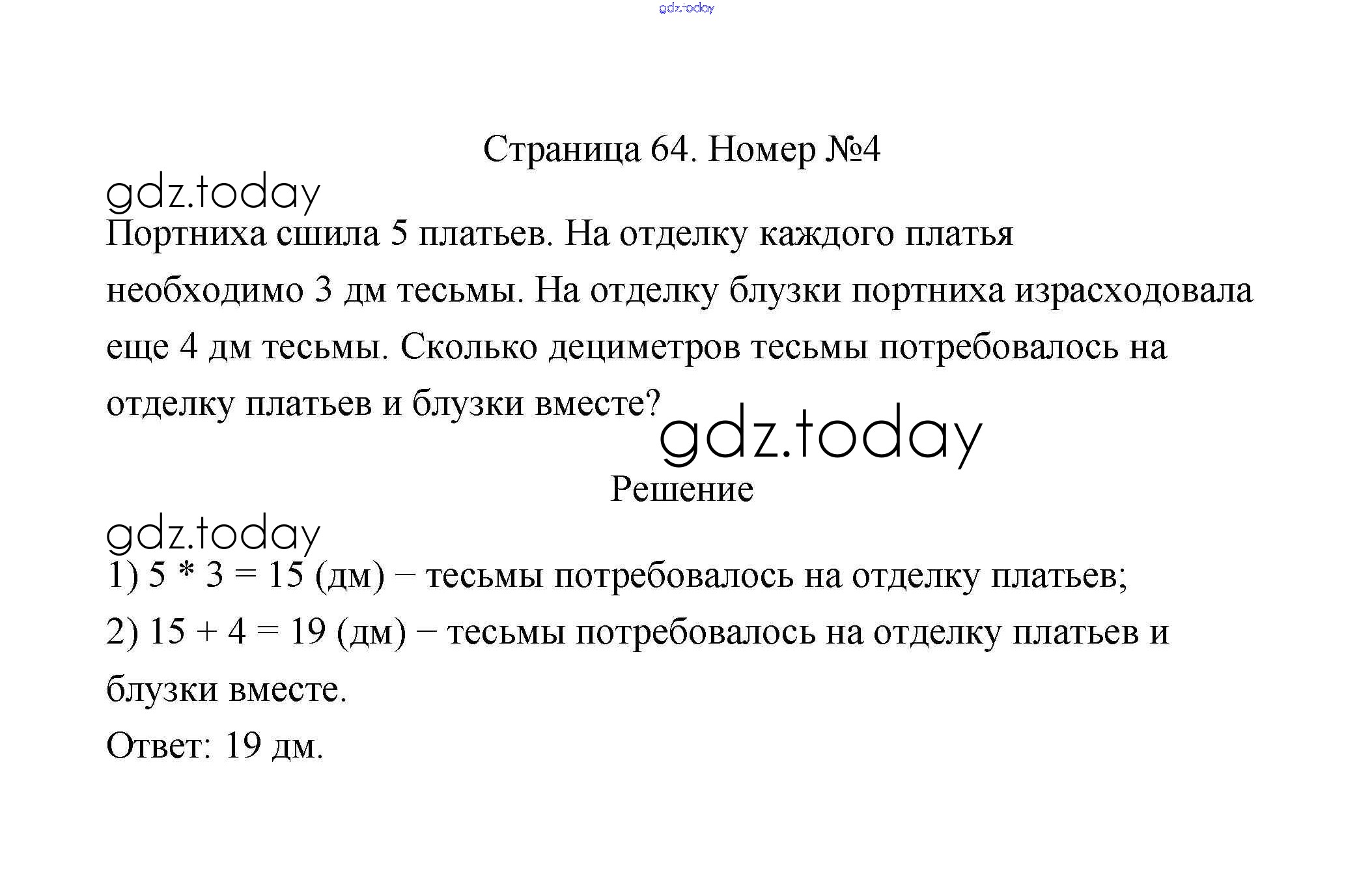 На страницах сайта gdz.today вы найдете учебный и вспомогательный материал, направленный на улучшения знаний школьной программы. ГДЗ - онлайн мир знаний Страницы 64-65 Решение к части 1 4 Учебнику по Математике для 2 класса Дорофеев, Миракова Просвещение Перспектива 2016