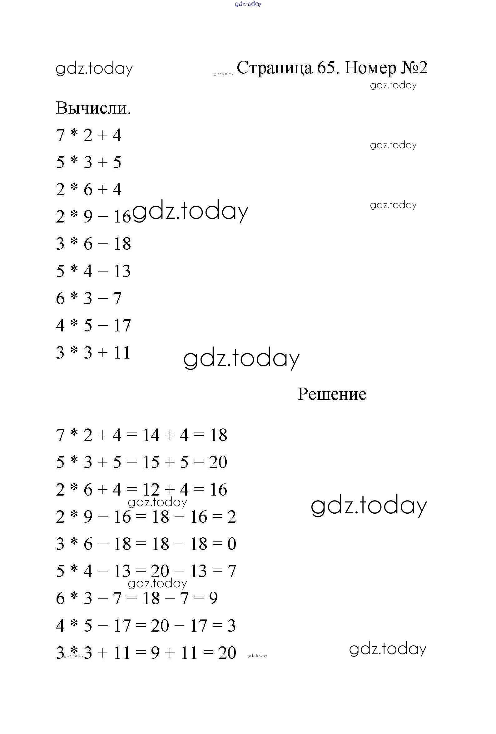 На страницах сайта gdz.today вы найдете учебный и вспомогательный материал, направленный на улучшения знаний школьной программы. ГДЗ - онлайн мир знаний Страницы 65-66 Решение к части 1 2 Учебнику по Математике для 2 класса Дорофеев, Миракова Просвещение Перспектива 2016