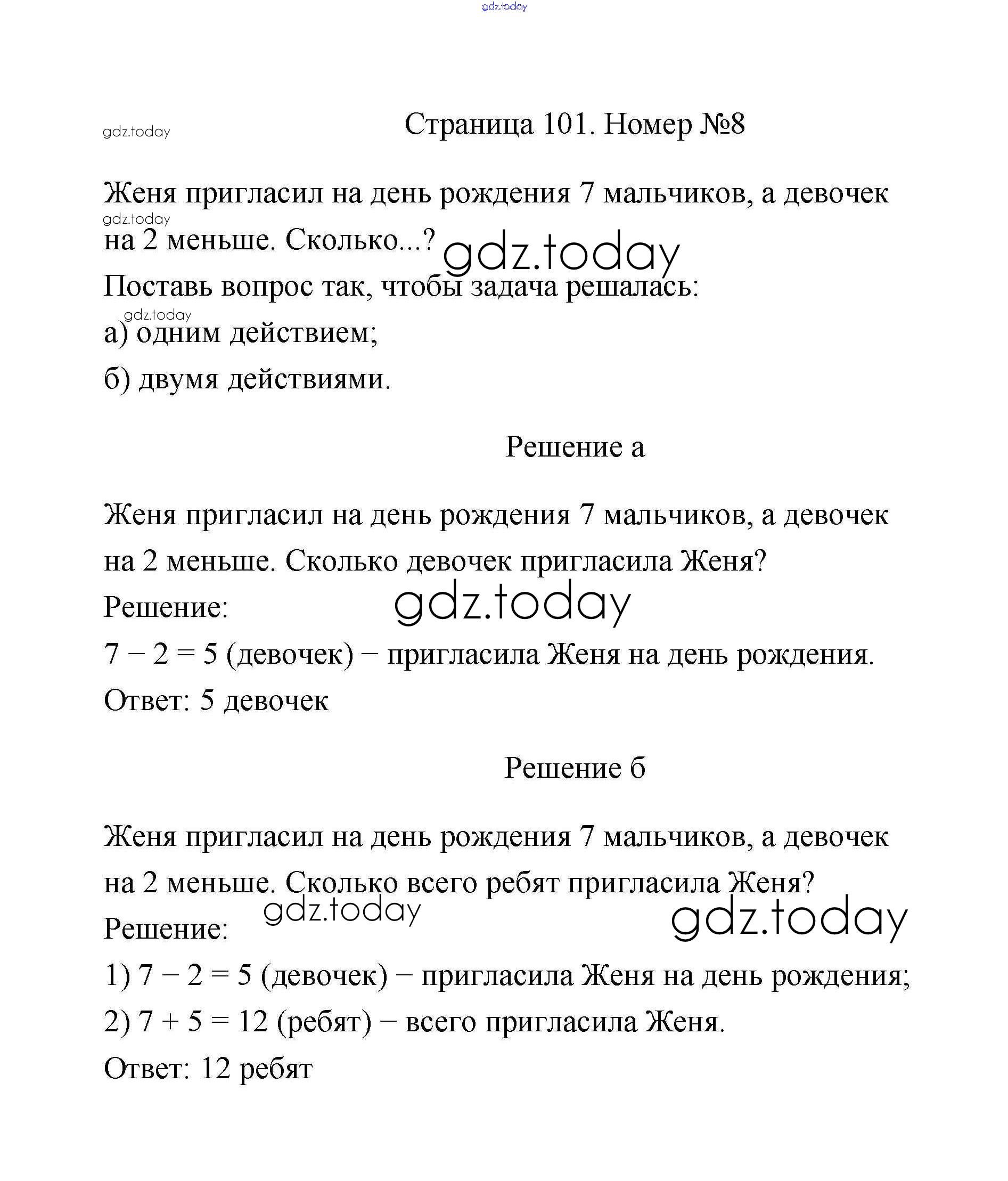 Ответы к Страницы 101-102 Решение к части 1 8 Учебнику по Математике для 2 класса Дорофеев, Миракова Просвещение Перспектива 2016