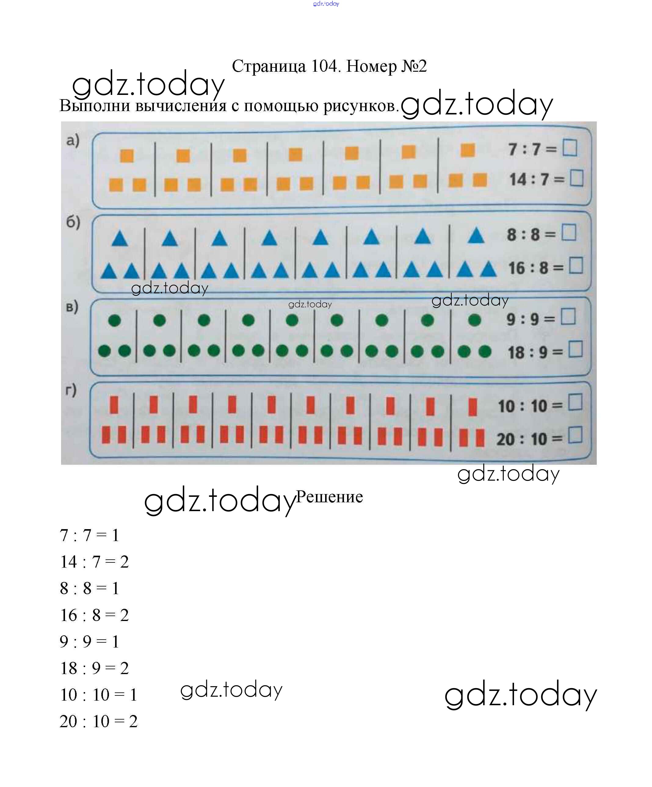 На страницах сайта gdz.today вы найдете учебный и вспомогательный материал, направленный на улучшения знаний школьной программы. ГДЗ - онлайн мир знаний Страницы 104-105 Решение к части 1 2 Учебнику по Математике для 2 класса Дорофеев, Миракова Просвещение Перспектива 2016