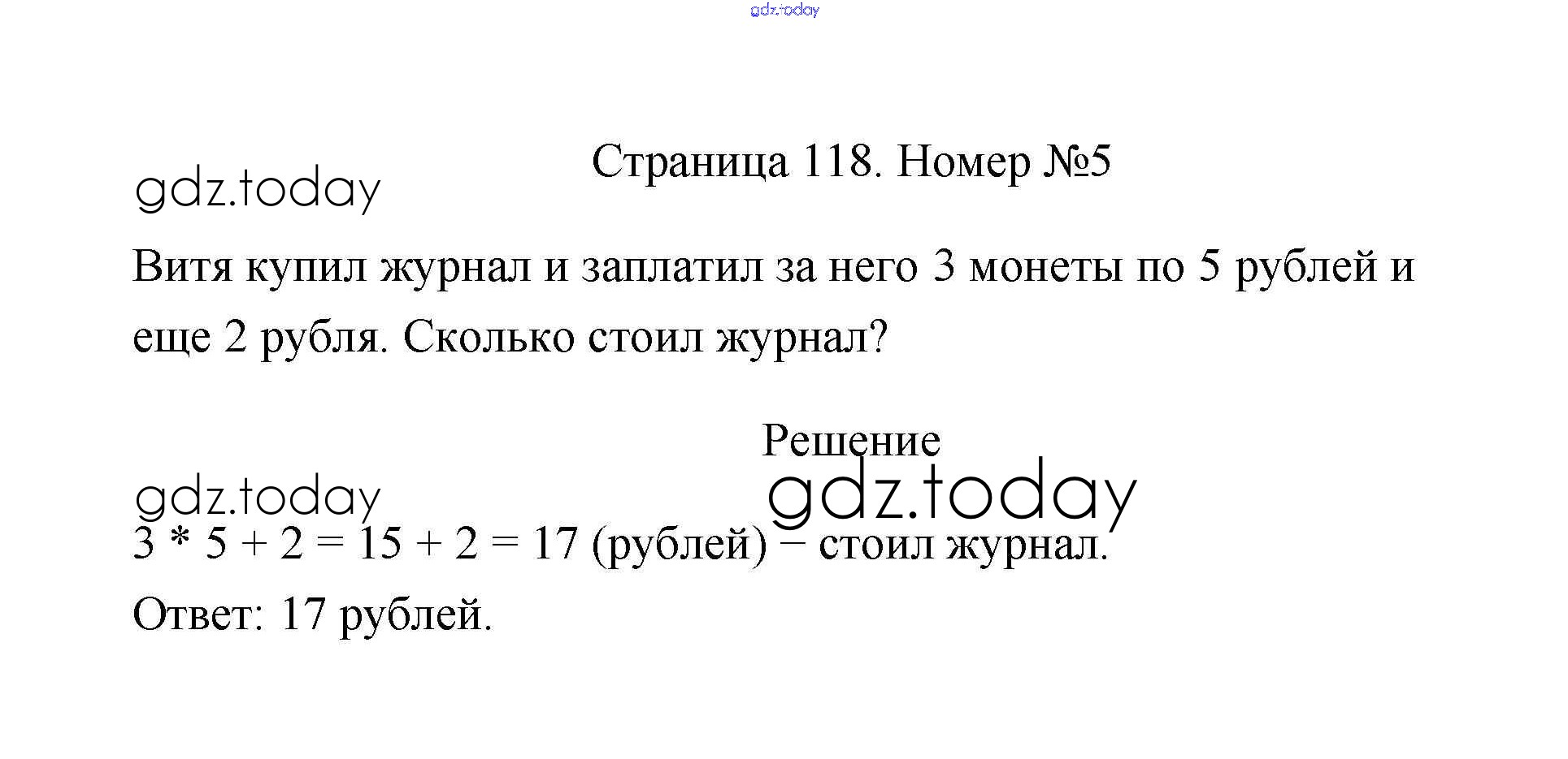 Ответы к Страницы 118 Решение к части 1 5 Учебнику по Математике для 2 класса Дорофеев, Миракова Просвещение Перспектива 2016