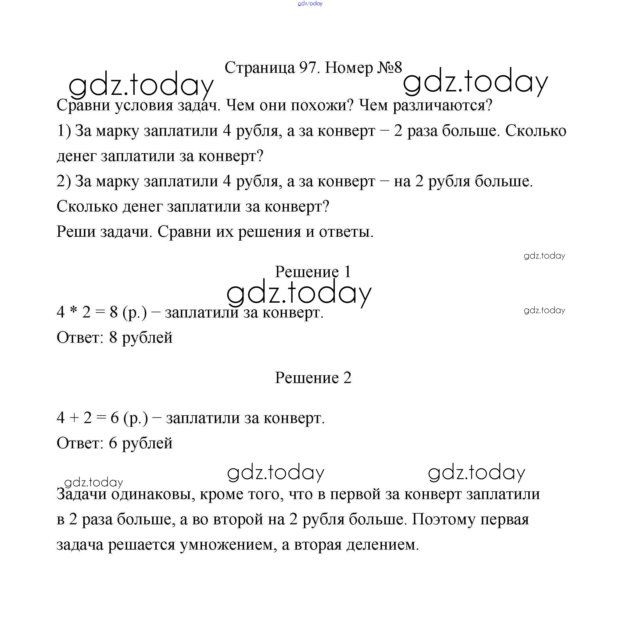 Ответы к Страницы 97-98 Решение к части 2 8 Учебнику по Математике для 2 класса Дорофеев, Миракова Просвещение Перспектива 2016