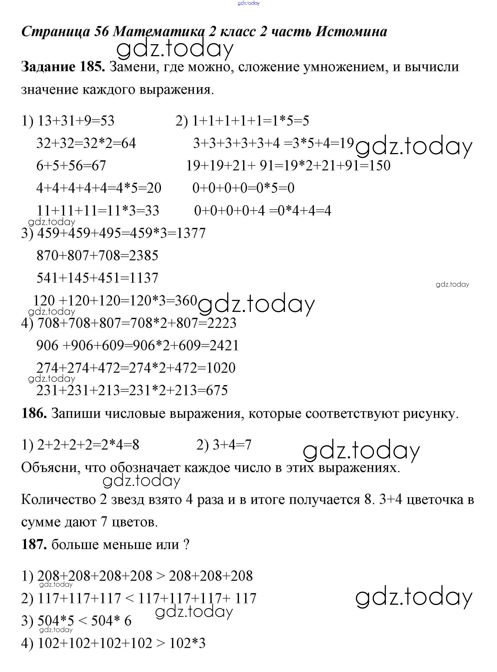 На страницах сайта gdz.today вы найдете учебный и вспомогательный материал, направленный на улучшения знаний школьной программы. ГДЗ - онлайн мир знаний Страницы (решение) 56 Учебнику по Математике для 2 класса Истомина Ассоциация 21 век Гармония 2016