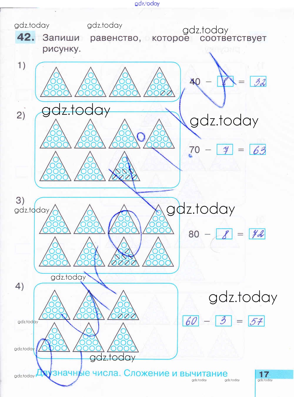 На страницах сайта gdz.today вы найдете учебный и вспомогательный материал, направленный на улучшения знаний школьной программы. ГДЗ - онлайн мир знаний Решение к части 1. Страницы 17 Рабочей тетради по Математике для 2 класса Истомина, Редько Ассоциация 21 век 2016