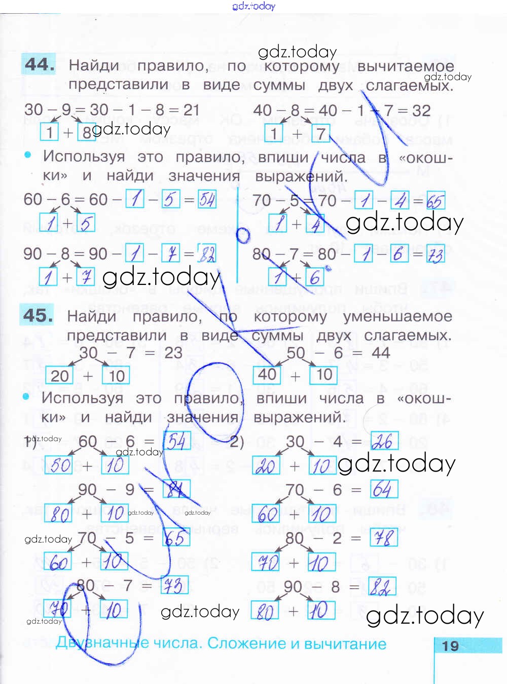 На страницах сайта gdz.today вы найдете учебный и вспомогательный материал, направленный на улучшения знаний школьной программы. ГДЗ - онлайн мир знаний Решение к части 1. Страницы 19 Рабочей тетради по Математике для 2 класса Истомина, Редько Ассоциация 21 век 2016
