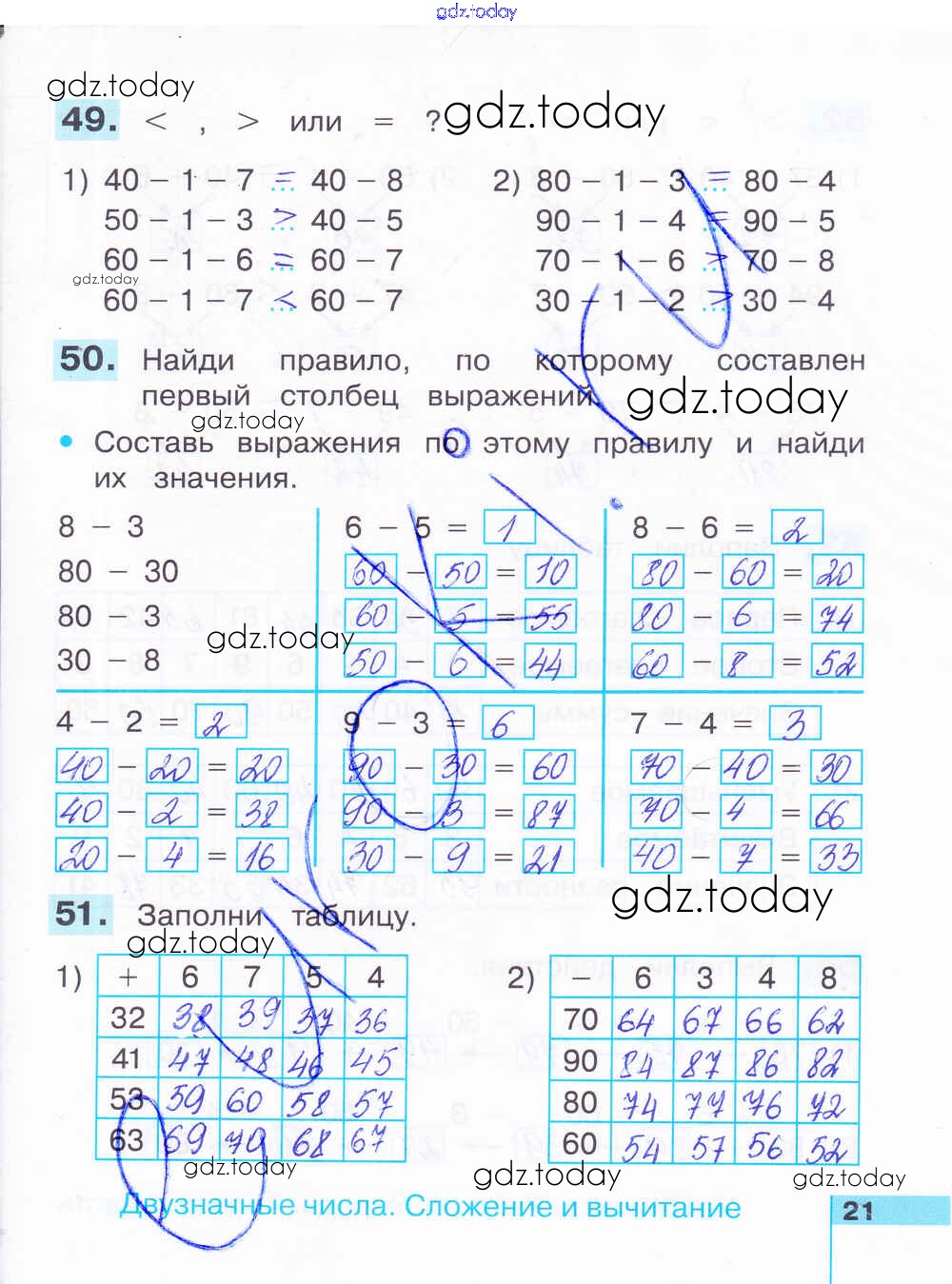 На страницах сайта gdz.today вы найдете учебный и вспомогательный материал, направленный на улучшения знаний школьной программы. ГДЗ - онлайн мир знаний Решение к части 1. Страницы 21 Рабочей тетради по Математике для 2 класса Истомина, Редько Ассоциация 21 век 2016