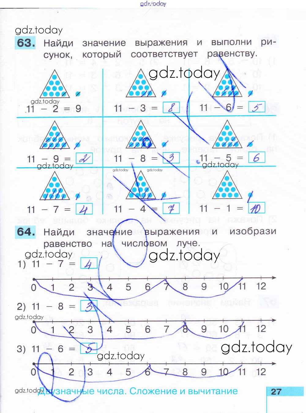 На страницах сайта gdz.today вы найдете учебный и вспомогательный материал, направленный на улучшения знаний школьной программы. ГДЗ - онлайн мир знаний Решение к части 1. Страницы 27 Рабочей тетради по Математике для 2 класса Истомина, Редько Ассоциация 21 век 2016