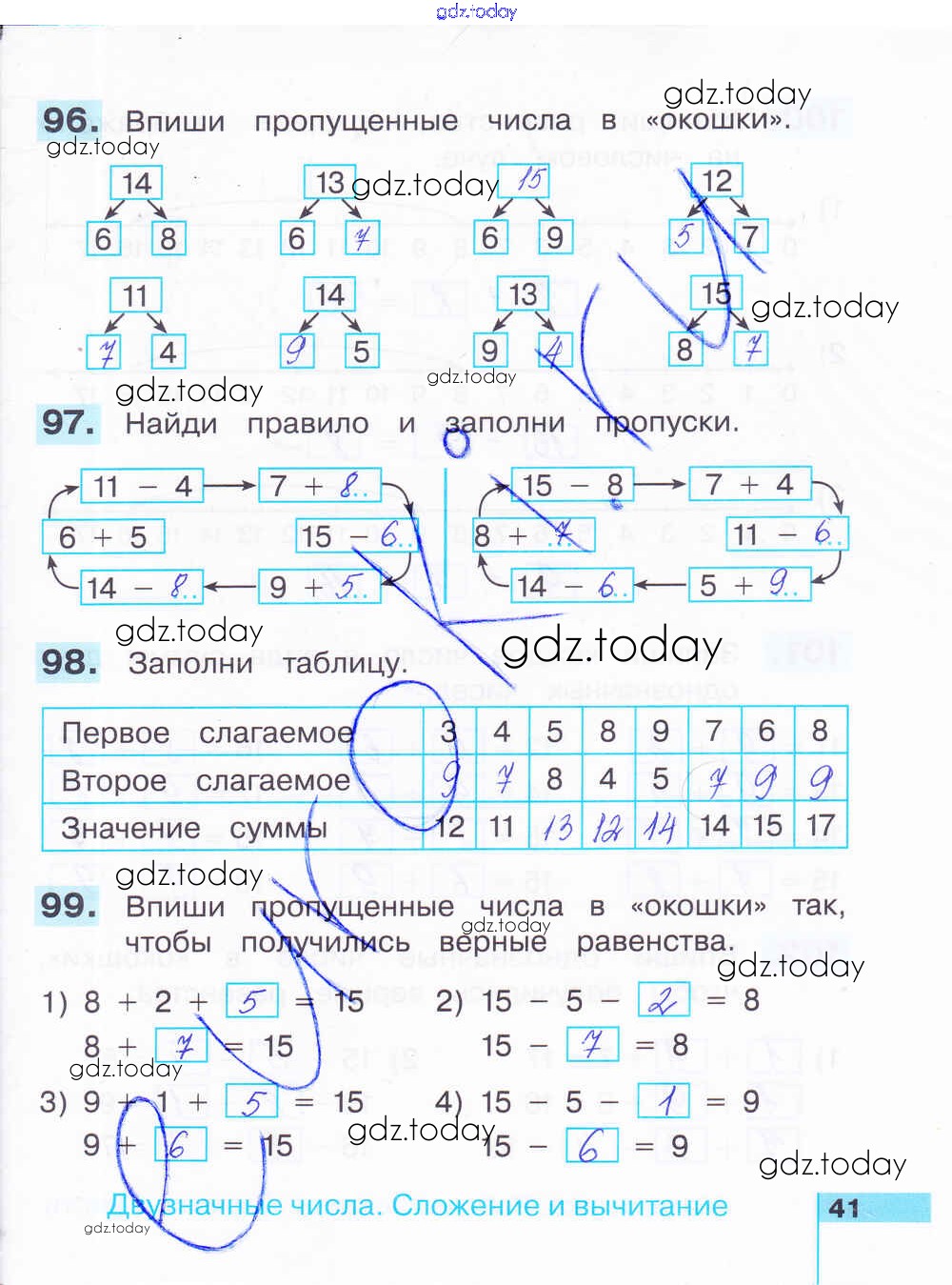 На страницах сайта gdz.today вы найдете учебный и вспомогательный материал, направленный на улучшения знаний школьной программы. ГДЗ - онлайн мир знаний Решение к части 1. Страницы 41 Рабочей тетради по Математике для 2 класса Истомина, Редько Ассоциация 21 век 2016