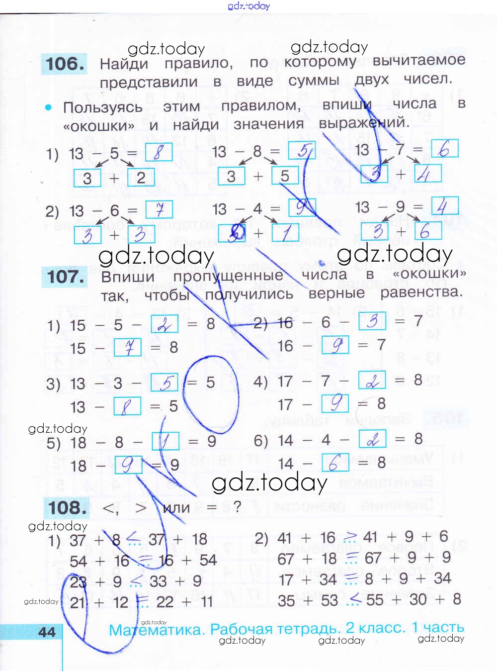 На страницах сайта gdz.today вы найдете учебный и вспомогательный материал, направленный на улучшения знаний школьной программы. ГДЗ - онлайн мир знаний Решение к части 1. Страницы 44 Рабочей тетради по Математике для 2 класса Истомина, Редько Ассоциация 21 век 2016