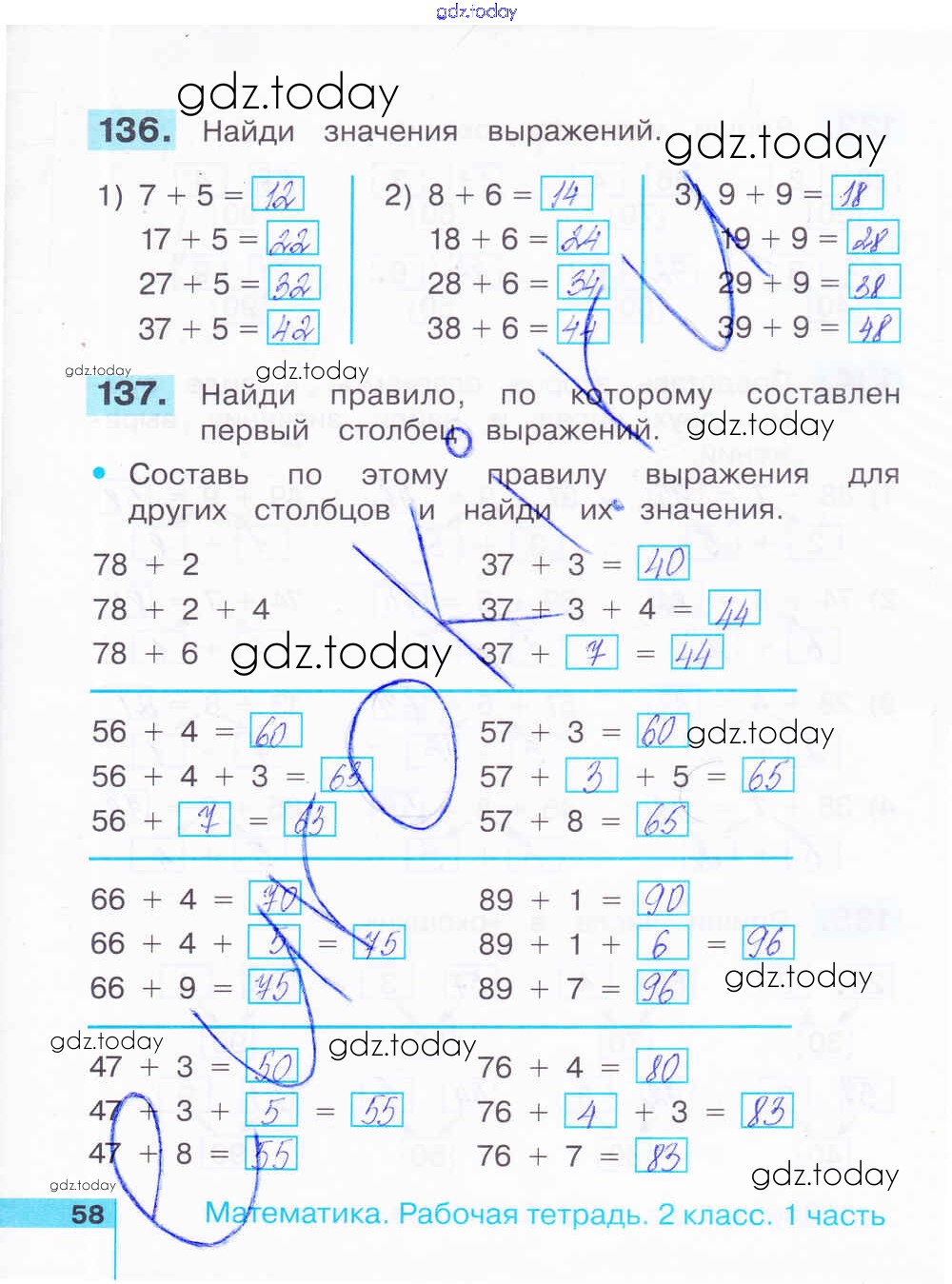 На страницах сайта gdz.today вы найдете учебный и вспомогательный материал, направленный на улучшения знаний школьной программы. ГДЗ - онлайн мир знаний Решение к части 1. Страницы 58 Рабочей тетради по Математике для 2 класса Истомина, Редько Ассоциация 21 век 2016