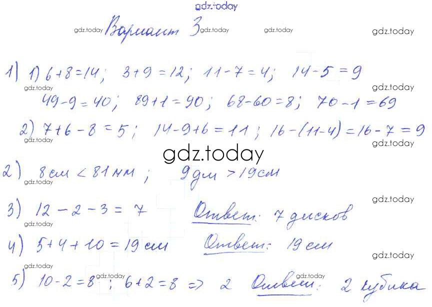 Ответы к Тема «Таблица сложения однозначных чисел и соответствующие случаи вычитания» стр. 17 Решение 2 класс Вариант 3 Контрольным работам по Математике для 2-4 класса Волкова Просвещение Школа России 2017