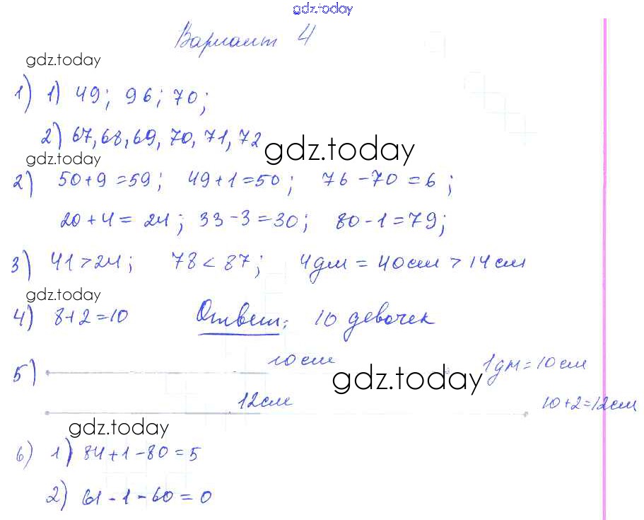 Ответы к Тема «Числа от 1 до100. Нумерация» стр. 18 Решение 2 класс Вариант 4 Контрольным работам по Математике для 2-4 класса Волкова Просвещение Школа России 2017