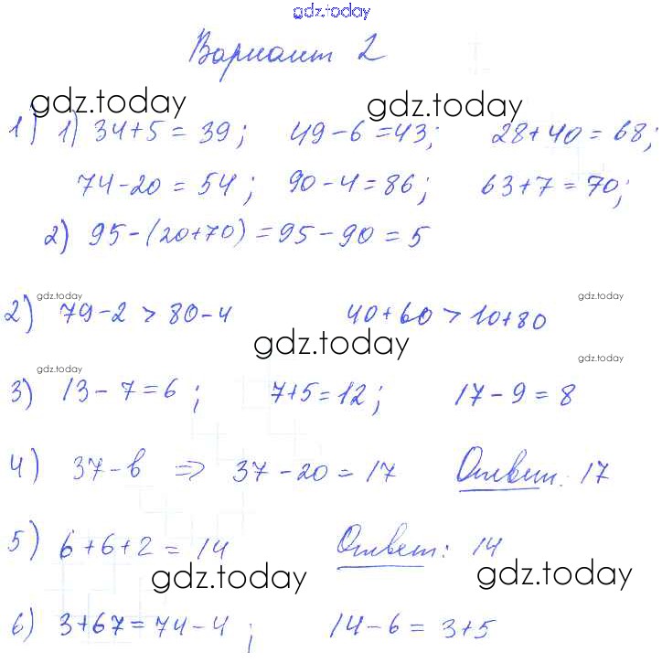 На страницах сайта gdz.today вы найдете учебный и вспомогательный материал, направленный на улучшения знаний школьной программы. ГДЗ - онлайн мир знаний Итоговая контрольная работа за 2 четверть Решение 2 класс Вариант 2 Контрольным работам по Математике для 2-4 класса Волкова Просвещение Школа России 2017