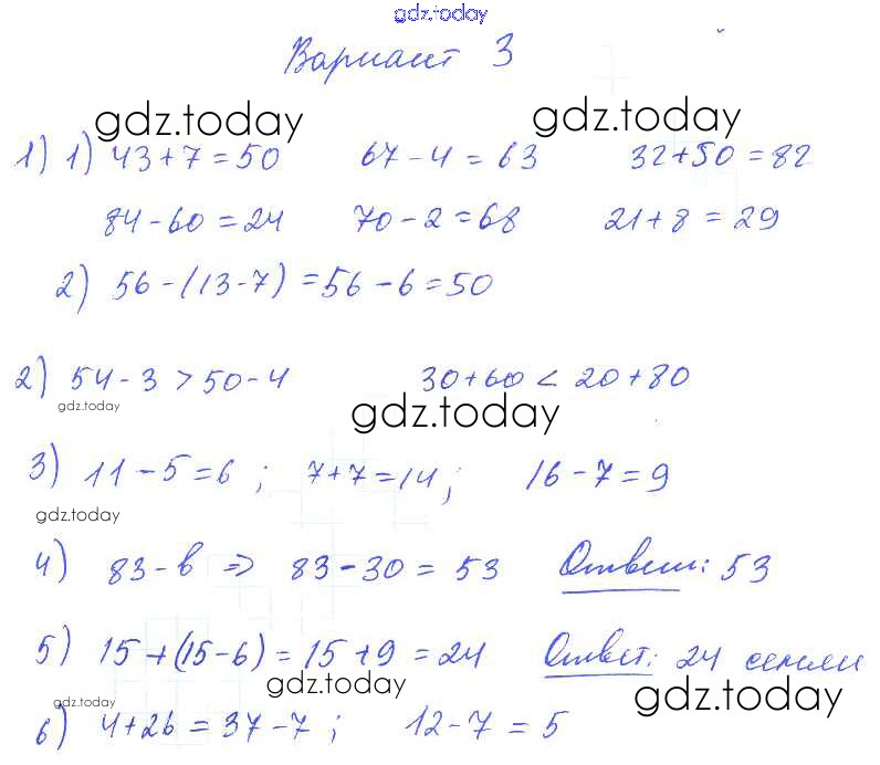 На страницах сайта gdz.today вы найдете учебный и вспомогательный материал, направленный на улучшения знаний школьной программы. ГДЗ - онлайн мир знаний Итоговая контрольная работа за 2 четверть Решение 2 класс Вариант 3 Контрольным работам по Математике для 2-4 класса Волкова Просвещение Школа России 2017