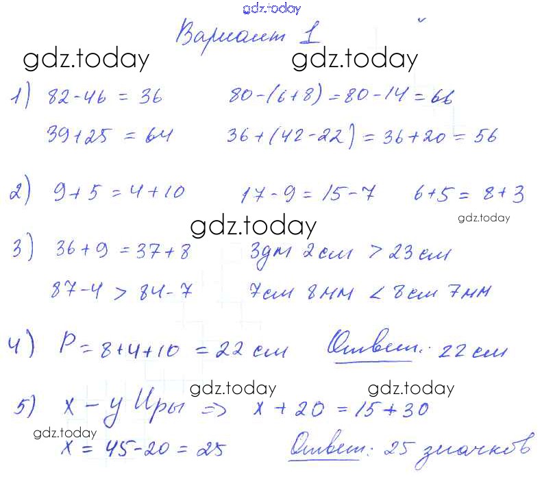 На страницах сайта gdz.today вы найдете учебный и вспомогательный материал, направленный на улучшения знаний школьной программы. ГДЗ - онлайн мир знаний Итоговая контрольная работа за 3 четверть. Контрольная работа 1 Решение 2 класс Вариант 1 Контрольным работам по Математике для 2-4 класса Волкова Просвещение Школа России 2017