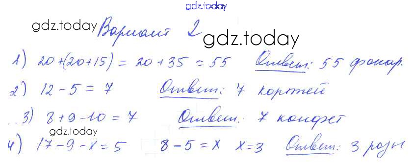 На страницах сайта gdz.today вы найдете учебный и вспомогательный материал, направленный на улучшения знаний школьной программы. ГДЗ - онлайн мир знаний Итоговая контрольная работа за 3 четверть. Контрольная работа 2 Решение 2 класс Вариант 2 Контрольным работам по Математике для 2-4 класса Волкова Просвещение Школа России 2017